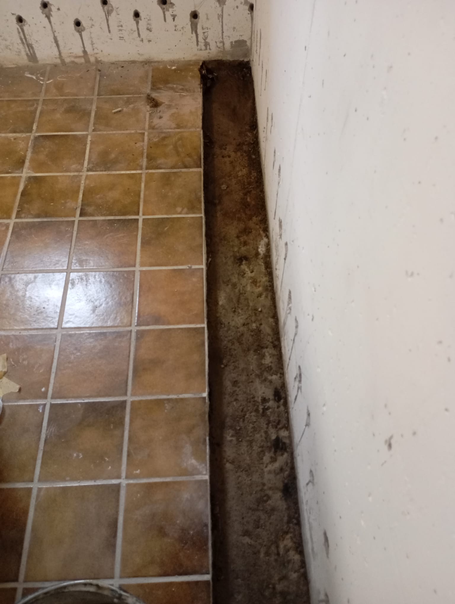 Die Ursache war, nach einer ausgiebigen Analyse und der Durchsicht der Baupläne, schnell gefunden. Ein defekter Wand-Sohlenanschluss der Betonbauteile. Aufgrund der defekten Abdichtung konnte das Wasser, bei viel Regen, durch die Fuge eindringen und sich zunächst unbemerkt unter dem Estrich verteilen. Der Kunde hatte bereits in Eigenregie versucht dem Problem Herr zu werden. Ohne Erfolg.