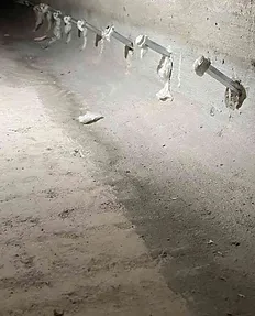 Im ersten Schritt wurde der Riss entlang des Wand-Sohlenanschlusses verpresst und mit einer Hohlkehle versehen. Anschließend wurde der Anschluss mit unserer Abdichtungsmasse Eco-Dicht versiegelt.